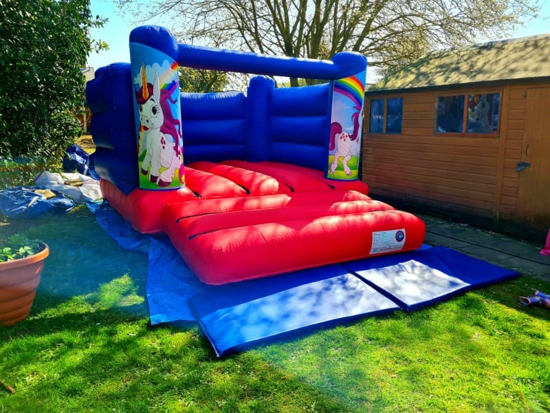 This low height bouncy castle comes with; extra thick safety mats, 1.5hp blower, heavy duty power cables, commercial grade anchor pegs (outdoor use), sandbags (indoor use) and groundsheet .